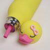 The adorable soft animal head is removable and sits on a screw on leak-proof lid.
